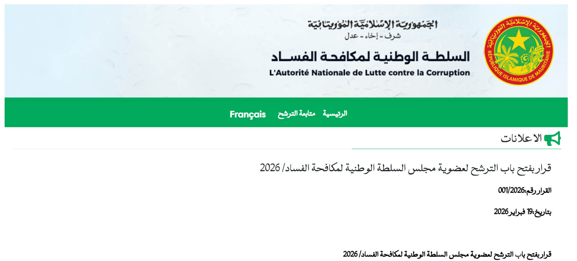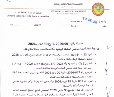 مداولة رقم: 001/2026 بتاريخ:30 مارس 2026